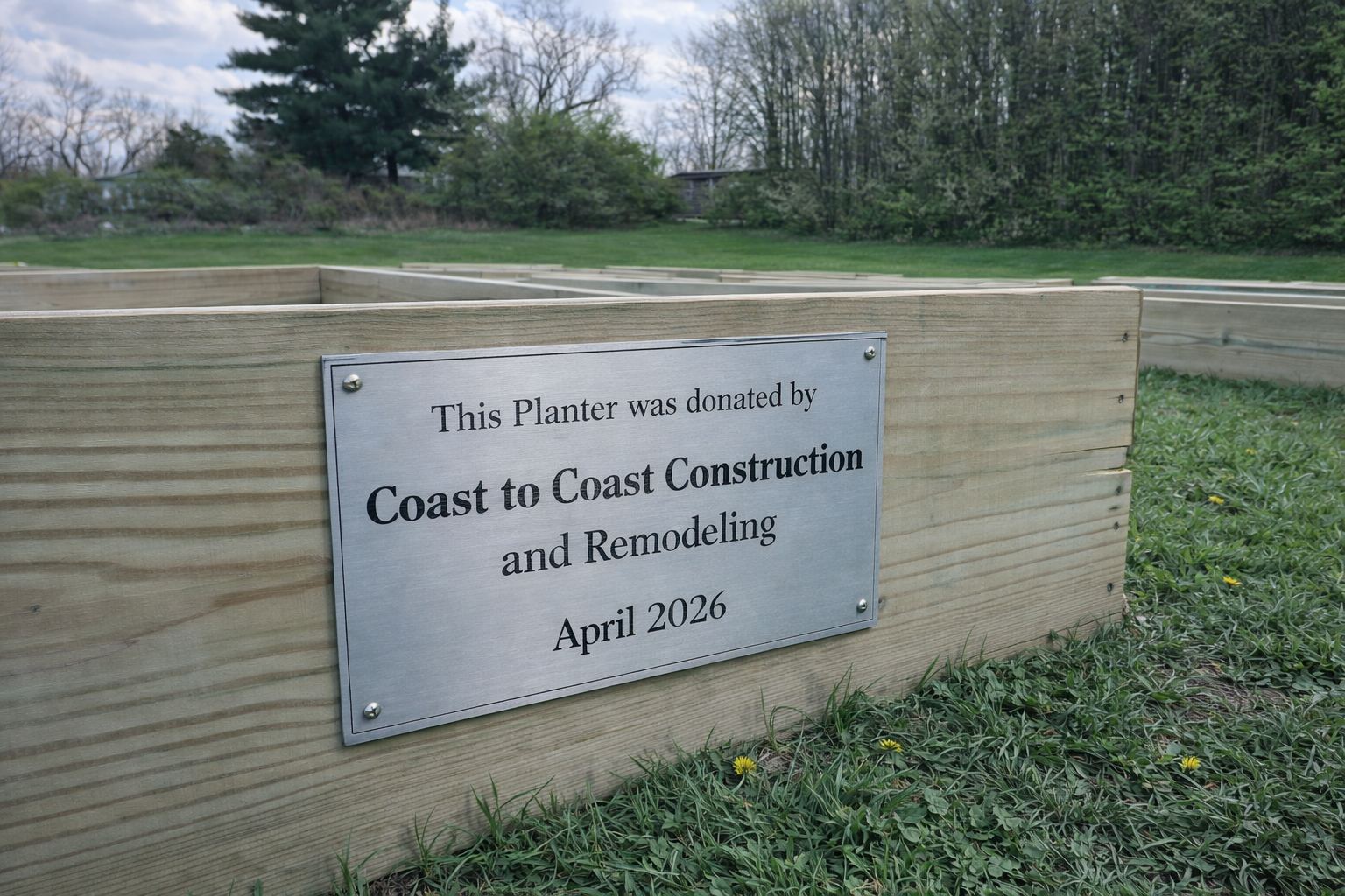 Our planters are 4ft by 8ft. With 1,080 lbs of soil and compost, these beds are made to build true harvests. By sponsoring a planter, you can choose one of the 40 planters on our location and choose what you would like to be planted in that bed. A 16″ by 8″ plaque will be placed on your bed.